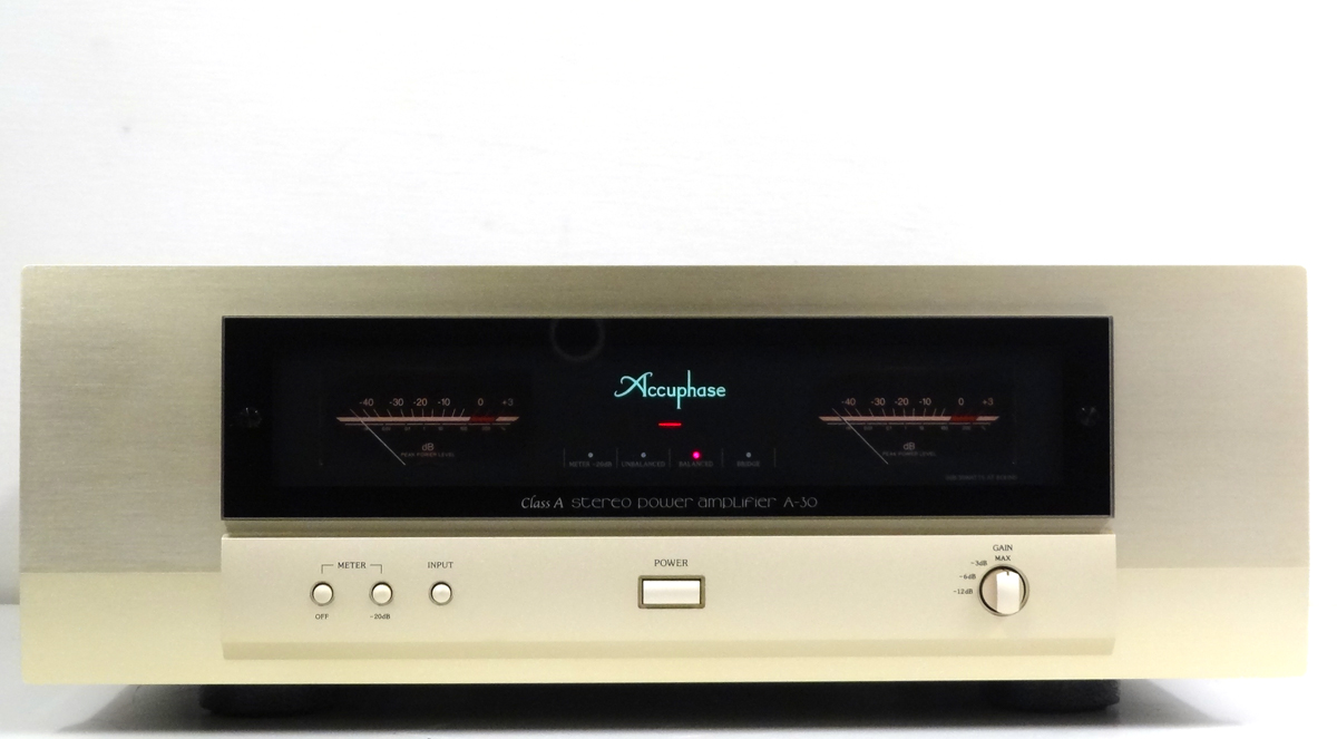 Accuphase アキュフェーズ A-30 パワーアンプを買取させて頂きました。 出力素子は、「パワーMOS FET」をチャンネル当たり3パラレルプッシュプルで構成、魅力溢れる音色を目指した純A級動作のパワーアンプです。