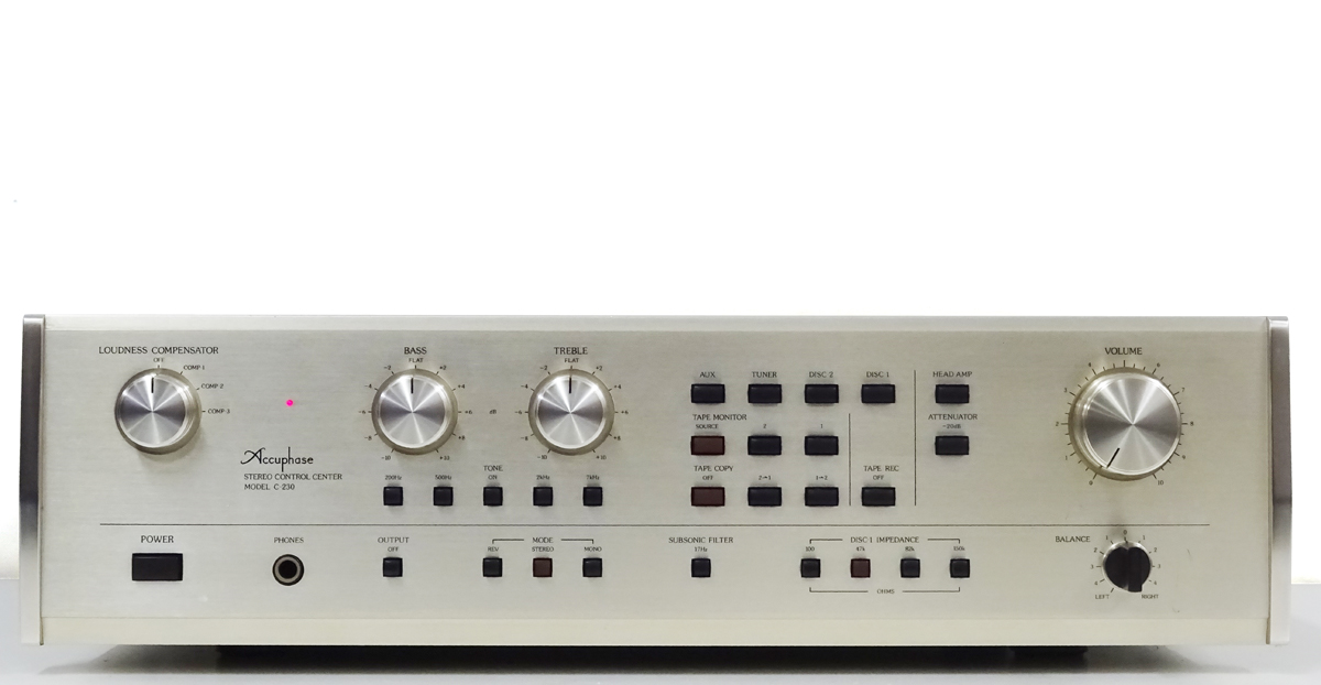 本格的なヘッドホンアンプを内蔵し音質調整機能も豊富に搭載したプリアンプ「Accuphase C-230」です。