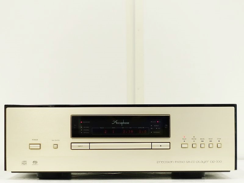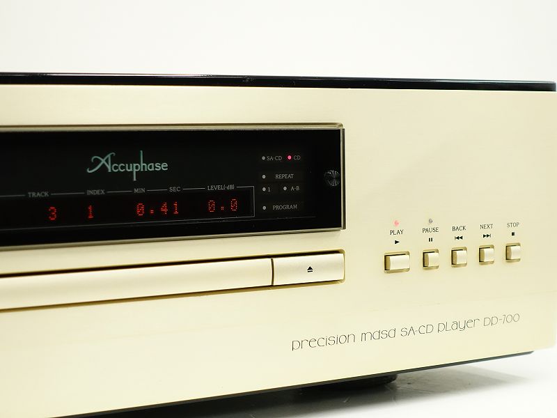 Accuphase(アキュフェーズ) DP-700は、DP-800/DC-801の優れたノウハウ全てを継承し、高剛性《SA-CD/CDドライブ》を搭載、MDSD再生方式を採用して、DSD信号をストレートにD/A変換を行うなど、最新デジタル・テクノロジーを詰め込み、最高峰の一体型SA-CD/CDプレーヤーを目指して製造されました。