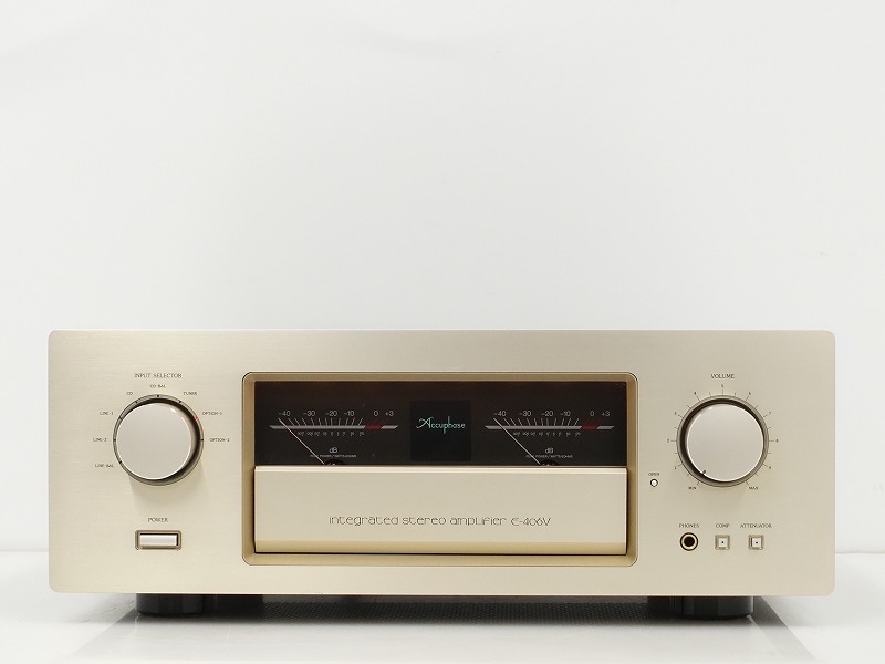 E-406V は、Accuphase社がセパレートアンプの開発で培った技術を投入し、インテグレーテッドアンプの新リファレンスモデルとして開発したプリメインアンプです。パワーアンプ部の出力素子には、大出力オーディオ用パワートランジスタを採用しており、高周波特性、電流増幅率リニアリティ、スイッチング等の諸特性に優れています。