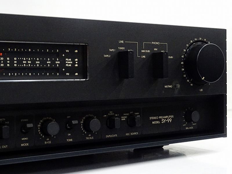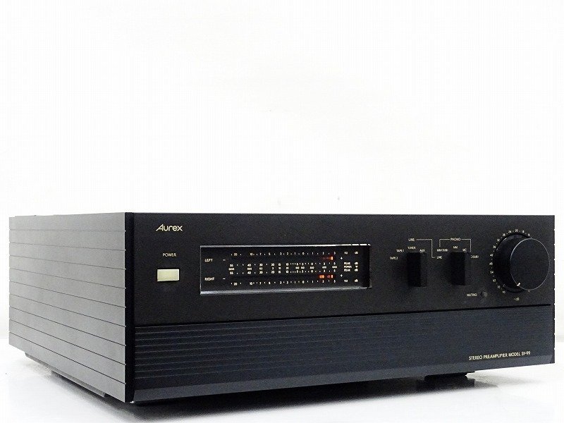 Aurex (オーレックス)とは東芝の本格的なオーディオブランドの名前で1969年〜1990年まで存在していました。オーレックスは、世界的なジャズイベントを日本国内で開催するなど、一世を風靡したオーディオブランドでした。オーレックスの名機であるSY-99は、SY-88をベースに徹底的な音質向上を達成し、1979年に誕生しました。SY-99はオーレックスの最高位にふさわしい豊かな音場と強力なパワーを発揮する鮮烈なサウンドで、プリアンプとは思えない重量感ある贅沢な造りとなっています。