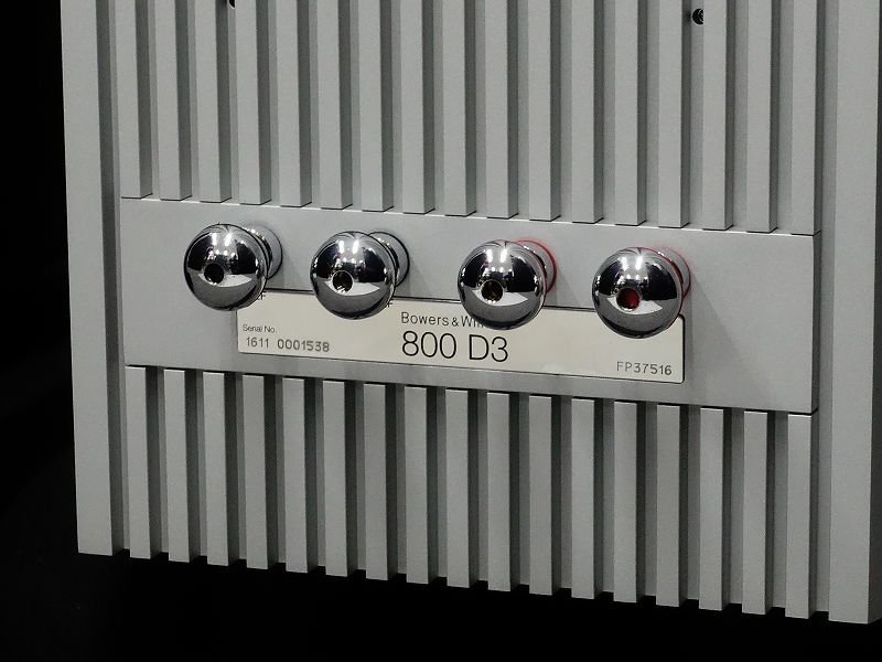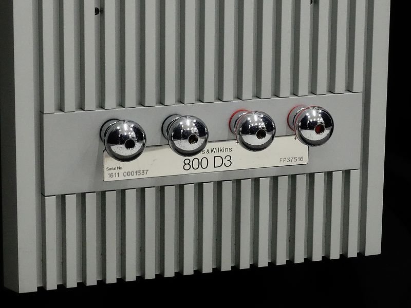 B&Wの800 D3はユニットに25mm径のダイヤモンドツイータを一台、150mm径のコンティニュアムコーンミッドレンジを一台、250mm径エアロフォイル・コーンウーファーを二台搭載した3ウェイ4スピーカー構成となっています。再生周波数帯域は13Hz~35kHz、感度は90dB、インピーダンスは8Ω(最低3Ω)です。