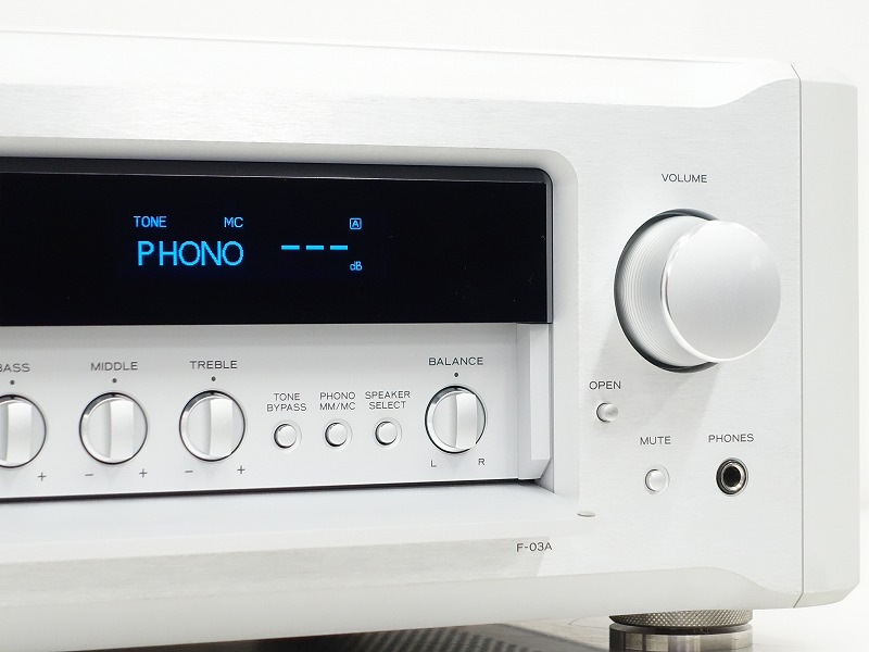 F-03Aは、究極のインテグレーテッドアンプを目指して開発されたプリメインアンプです。Grandioso直系のフルバランス・プリアンプとClassAパワーアンプを搭載しています。これにより、滑らかで密度が高く、素晴らしい音色、繊細なテクスチャーを表現できる一体型アンプのリファレンスモデルとなりました。構成は、プリアンプからパワーアンプ最終段までの全段でデュアルモノーラル構成となっています。