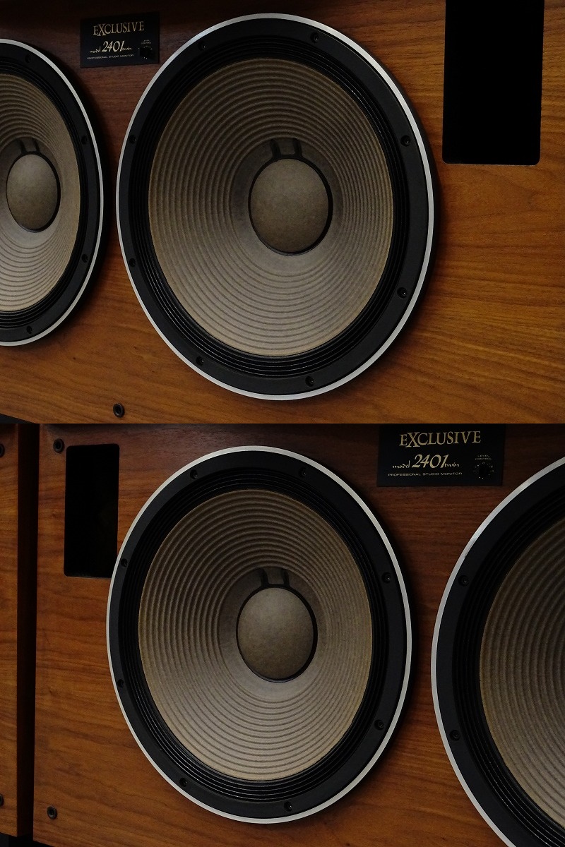 EXCLUSIVE(エクスクルーシヴ)はパイオニアが誇るハイエンド製品であり、パワーアンプ、プレーヤー、ビデオセレクター、プリアンプなど様々な高品質な製品があります。今回買取させていただきましたのは、最高の技術を投入して開発されたTADのスタジオモニター「EXCLUSIVE model 2401 twin」のスピーカーペアです。「EXCLUSIVE model 2402」と共に1983年に発売さた製品で、 ライブ音楽のエネルギーと興奮をそのまま再現したクリーンで正確なサウンドであるという評価を獲得しました。この伝説的なモデルは、1980年代のプロスタジオにおける独占的なシェアを誇り、現在も優れた音質をはかる一つの基準とされています。