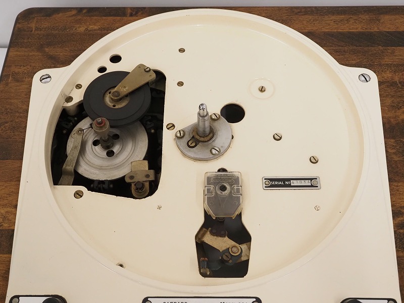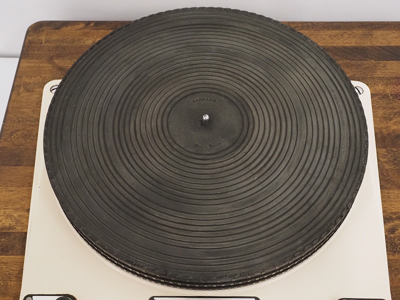 GARRARD MODEL 301は、LPレコード誕生の6年後にあたる1954年に発表されたガラード社のアイドラードライブ方式ターンテーブルです。強力な大型インダクションモーターを採用し、その振動を軽減するオリジナルのサスペンション機構やエディカレントブレーキによる回転数微調整機構、さらにダイナミックバランス調整が慎重に装備されたアルミダイキャスト製プラッターの搭載などが特徴です。