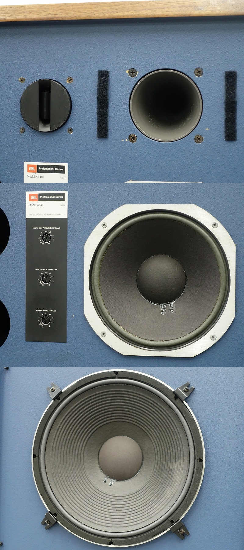 JBL 4344は、1982年~1983年の前期までと1983年以降の後期とで一部の使用されているユニットが変わります。中高域のドライバーユニットは前期は2421B、後期は2425Jが使用されています。また、高域のホーン型ツイーターは前期は2405、後期は2405Hが使用されています。