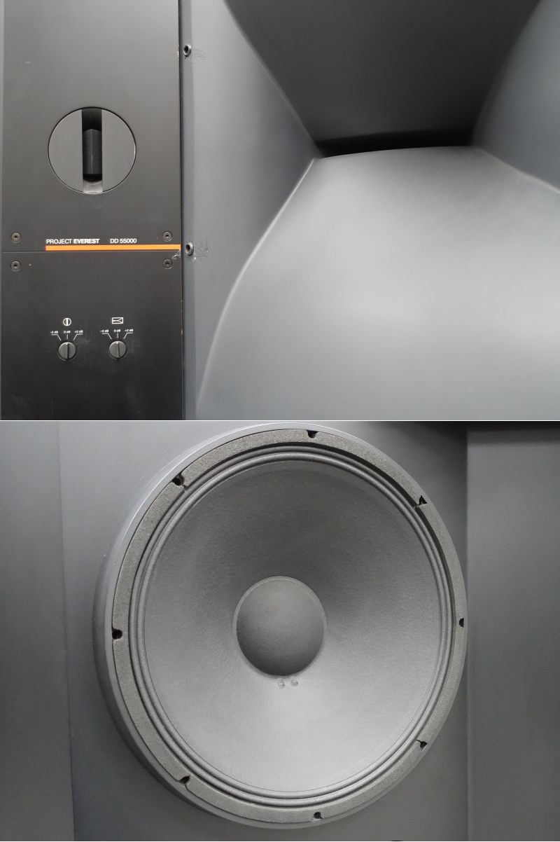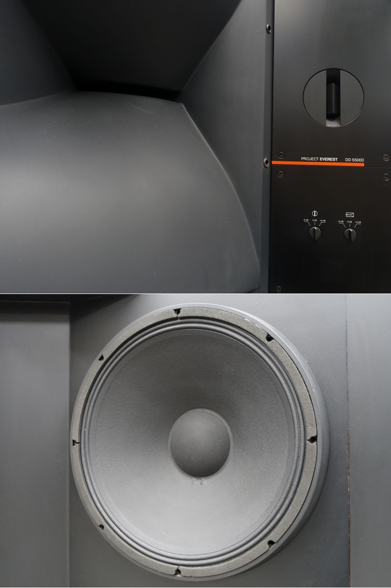 JBL EVEREST DD55000は、名機パラゴンを超えるスピーカとして開発されたプロジェクト・エベレスト第1弾の大型スピーカーシステムです。DD55000は、2つの大きなテーマ(正確なステレオ・イメージのサービスエリアの拡大と、ダイナミックレンジの大幅な拡大)のもとにプロジェクトチームが結成されました。パラゴンやハーツフィールドなどにさかのぼって、根本的な音響理論の確認や、最新技術を使用した音の解析によって設計・開発されました。
