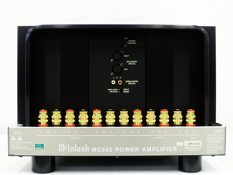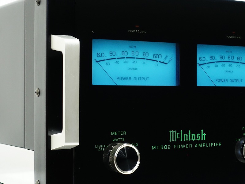 McIntosh MC602は、ダブルバランスサーキットやアウトプットオートフォーマーを搭載し、マッキントッシュ社のステレオパワーアンプの最高峰として発売されたモデルです。パワーアンプ部の回路に搭載されたダブルバランスサーキットは、通常2つの対称回路で構成されるバランス回路の上下に、さらにもう1組の対称回路を配置し、合計4つのアンプで構成されています。これにより入力から出力までほぼ完全な平衡性を持っています。出力パワートランジスタは48個使用しており、4つの大型ヒートシンクに固定することで自然空冷のみで冷却を行っているのが特徴です。